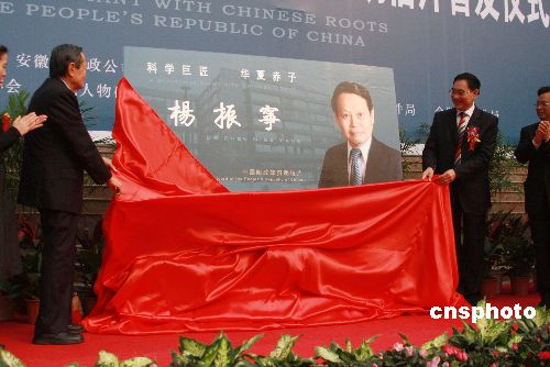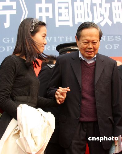 2007年11月14日,《科學(xué)巨匠、華夏赤子--楊振寧》明信片首發(fā)儀式在安徽省合肥市科技館舉行,楊振寧攜妻子翁帆出席。這套明信片共有30張照片,這些照片中不僅有楊振寧和國家領(lǐng)導(dǎo)人的合影,以及他獲得諾貝爾獎時(shí)的照片,還有楊振寧與翁帆在青海踏青時(shí)的照片。中新社發(fā) 從啟 攝