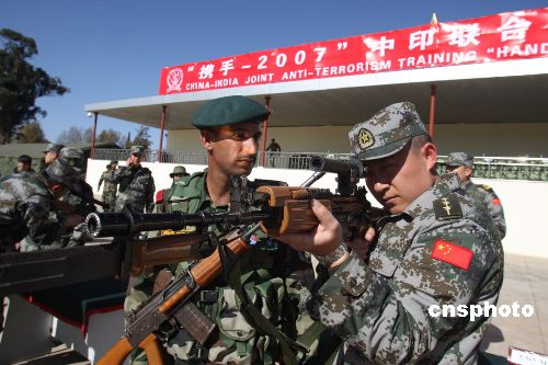 “攜手-二00七”中印陸軍聯(lián)合反恐訓(xùn)練開訓(xùn)儀式21日上午在中國昆明舉行。中新社發(fā) 張雷 攝