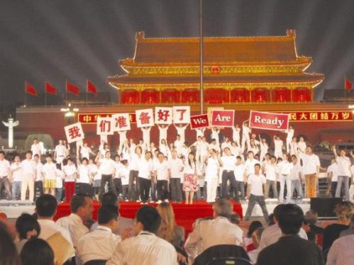 9)奧運會倒計時一周年天安門廣場大型演出活動,《明橋體育》總編和時代華語廣播電臺臺長作為休斯頓及美南地區(qū)華文媒體代表應(yīng)邀出席現(xiàn)場觀禮----2007年8月8日是北京奧運會倒計時一周年,北京奧組委當晚在天安門廣場舉行大型文藝演出和慶;顒印P菟诡D及美南地區(qū)兩家華文媒體的負責人,《明橋體育》總編輯勞荊和時代華語廣播電臺臺長美齊應(yīng)北京市僑辦邀請,作為貴賓出席了現(xiàn)場的觀禮活動以及多項紀念和慶祝活動。