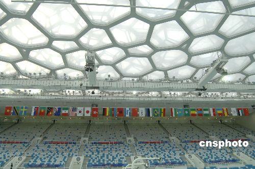 1月28日,位于北京市北四環(huán)的北京奧運(yùn)會(huì)標(biāo)志性場(chǎng)館、北京的新地標(biāo)之一——國(guó)家游泳中心(“水立方”)竣工并交付使用。經(jīng)過參建各方4年多的努力,國(guó)家游泳中心完成了奧運(yùn)建設(shè)工作,夢(mèng)幻般的水藍(lán)色建筑即將投入“好運(yùn)北京”賽事使用。國(guó)家游泳中心在國(guó)內(nèi)首次采用ETFE氣枕結(jié)構(gòu),是世界上建筑面積最大、功能要求最復(fù)雜的膜結(jié)構(gòu)系統(tǒng)。中新社發(fā) 徐曦弋 攝