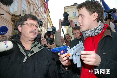 中新網(wǎng)布拉格3月16日電 在昨天下午布拉格舉行的反對(duì)美國(guó)在捷克建立中歐導(dǎo)彈防御系統(tǒng)的雷達(dá)基地的示威游行中,捷克示威民眾要求美國(guó)駐捷克大使館向美國(guó)政府轉(zhuǎn)交他們尋獲的所謂“伊朗大規(guī)模殺傷性武器”的證據(jù),而這些證據(jù)實(shí)際上只是一些塑料兒童玩具。示威者用一種特殊方式嘲笑和譏諷美國(guó)政府尋找戰(zhàn)爭(zhēng)借口如同兒戲,入侵伊拉克還想打伊朗。