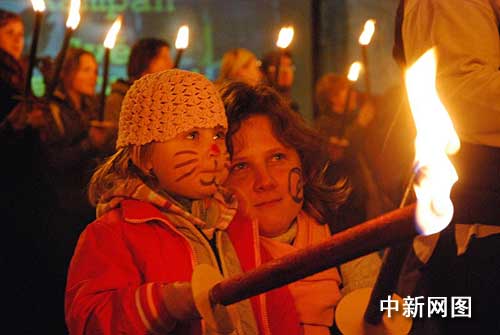 一對(duì)母女3月15日晚上在捷克首都布拉格和平廣場(chǎng)上舉行的要求外國軍隊(duì)撤出伊拉克的反戰(zhàn)火炬集會(huì)上。