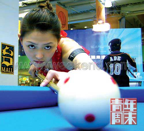 青年周末:最近大家愛(ài)拿你和潘曉婷作比較,一個(gè)是臺(tái)灣的九球美女,一個(gè)是內(nèi)地的九球天后。