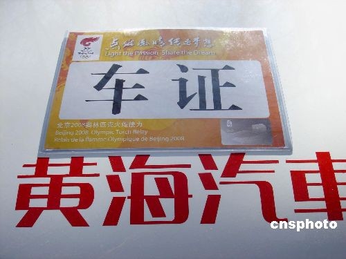 點(diǎn)燃激情傳遞夢(mèng)想--奧運(yùn)圣火傳遞車證。中新社發(fā) 邵風(fēng)雷 攝