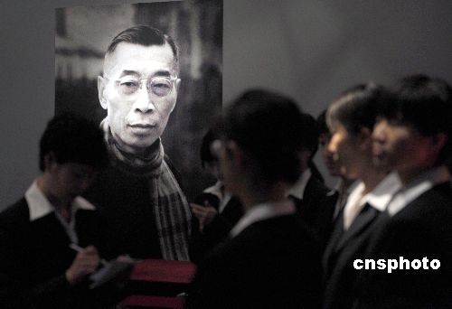 四月七日,“潔白的豐碑:紀(jì)念傅雷百年誕辰”展覽在北京國(guó)家圖書(shū)館展覽廳開(kāi)幕,工作人員在傅雷畫(huà)像前準(zhǔn)備開(kāi)幕式。傅雷先生是中國(guó)著名的文學(xué)翻譯家、藝術(shù)評(píng)論家和教育家,他是二十世紀(jì)中國(guó)翻譯界的典型代表。該展是迄今規(guī)模最大的傅雷紀(jì)念展,由中國(guó)國(guó)家圖書(shū)館主辦。中新社發(fā) 廖攀 攝