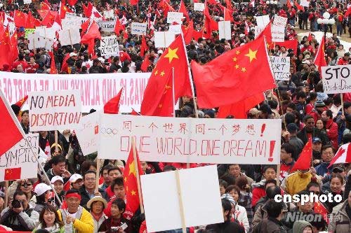 組圖:海外同胞支持北京奧運(yùn) 護(hù)衛(wèi)圣火傳遞 (2)