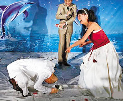 中新網(wǎng)5月4日電 湯鎮(zhèn)業(yè)前晚(2日)在青島郎園酒吧舉行秘密婚禮,迎娶青島姑娘文靜。一對(duì)新人與海甚為有緣,幾年前在海南島海邊相識(shí),又情訂于海邊,最后選擇在海邊的酒吧結(jié)婚;槎Y現(xiàn)場(chǎng)湯鎮(zhèn)業(yè)更重演跪地求婚一幕,溫馨感人。