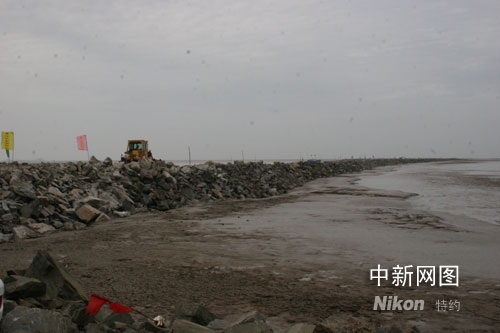 從2006年7月正式開工以來,海濱新城完成總拋填量100多萬立方,形成陸域面積600多畝,目前施工速度保持在每天拋填量1萬立方米左右,每天進場的拋填工程車達5000余車次。