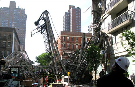 紐約摩天大樓建筑起重機(jī)跌落至少兩人死亡(組圖)(2)