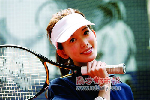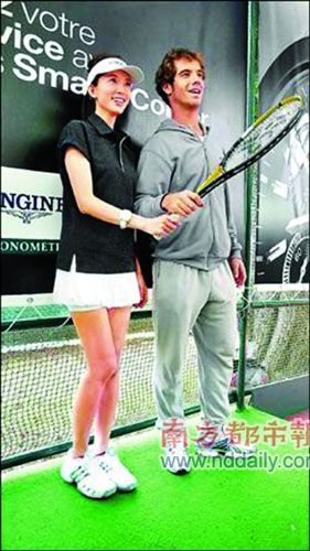 當(dāng)天,主辦單位安排現(xiàn)年19歲、目前法國排名第一的網(wǎng)球選手RichardGasquet教林志玲發(fā)球,“師徒”兩人剛見面,沒打過網(wǎng)球的林志玲就羞紅了臉。師傅教她握拍、開球,善打羽毛球的林志玲以羽毛球動作開球,“花拳繡腿”地?fù)]拍接球,接連幾球都將球砸向攝影師,她俏皮地頻吐舌頭道歉。(祁玲)