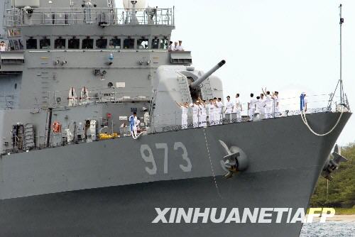 韓國(guó)海軍的一艘軍艦正駛向美國(guó)夏威夷的珍珠港。新華社/法新