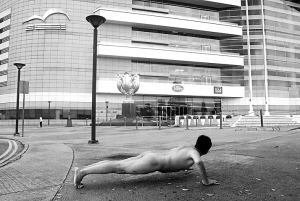區(qū)志航:我并非為了拍照而拍照。我之前拍人體攝影已經(jīng)很多年了,拍多了之后,我就開始覺得沒意思了,需要尋找一個(gè)新的藝術(shù)訴求突破口。我骨子里有一種很叛逆的東西需要被激發(fā),同時(shí)也想向人們傳達(dá)一種積極、健康的觀念,于是我想到了用“裸體做俯臥撐”的這種方式去表達(dá)。另外,我作為一個(gè)媒體工作者,多年來又一直與當(dāng)代藝術(shù)的圈子有很緊密的聯(lián)系,我發(fā)現(xiàn)媒體與當(dāng)代藝術(shù)之間有很尖銳的矛盾。所以我想在二者之間找到一種平衡,讓當(dāng)代藝術(shù)與人們的生活聯(lián)系得緊密一些,而人們也能夠理解當(dāng)代藝術(shù)的一些東西,我的這組作品也有這方面的作用。