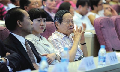 諾貝爾物理學獎獲得者、美國能源部部長、華裔,朱棣文的三重身份吸引了大批清華學子,諾獎得主楊振寧和夫人也到場旁聽捧場,能容納三百人的報告廳座無虛席,過道都站滿了慕名前來的同學。11點,朱棣文準時現(xiàn)身,盡管天氣炎熱,他仍然正裝穿扮,白色襯衫、深色西裝、深色領帶。