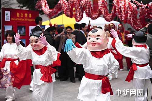 春節(jié)祭開場(chǎng),各式中國(guó)傳統(tǒng)民俗表演讓日本當(dāng)?shù)厝烁惺艿搅酥袊?guó)濃濃的年味。舞龍、旱船、大頭娃娃、太極拳,場(chǎng)面分外熱鬧。