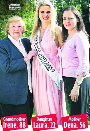 現(xiàn)年22歲的英國女孩勞拉·科爾曼在“英國小姐”選美大賽中擊敗其他49名決賽佳麗,一舉奪得了“英國小姐”的桂冠。然而鮮為人知的是,勞拉其實來自一個英國“選美世家”,她的外婆愛琳、母親迪娜都曾經(jīng)當選過英國各個選美大賽中的“選美皇后”!
