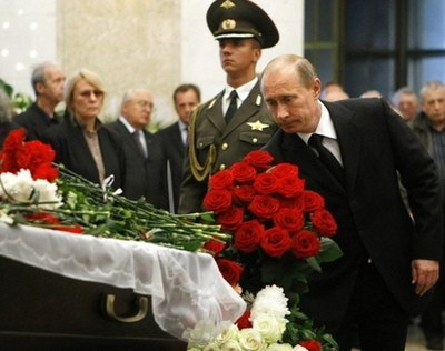 普京5日參加亞歷山大·索爾仁尼琴遺體告別儀式。