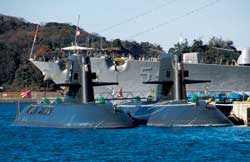 11月30日,記者乘車前往位于橫須賀的日本海上自衛(wèi)隊自衛(wèi)艦隊司令部。一進入曲徑通幽的港口營區(qū),記者即被告知,不經過允許,嚴禁將攝像機和照相機鏡頭對準自衛(wèi)艦隊的碼頭和艦艇,以及與之毗鄰的美國海軍基地。日本自衛(wèi)艦隊的艦艇和美國海軍基地的軍艦相鄰泊靠,艦體大都涂成深灰色,依靠艦旗分出彼此。抬眼遠望,美國海軍幾艘大型艦艇引人注目,可以看到“54”“69”等舷號。有人說,“小鷹”號航母就在其中,而那艘舷號為“54”的艦艇,曾到我國青島訪問。