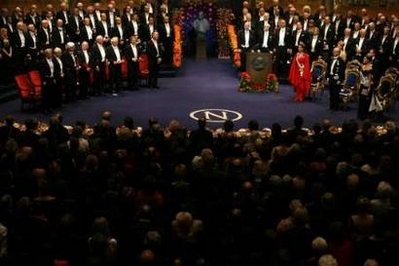 中新網(wǎng)12月12日電 綜合報道,2007年諾貝爾獎頒獎典禮近日分別在挪威首都奧斯陸和瑞典首都斯德哥爾摩隆重舉行。不同領(lǐng)域的多位獲獎?wù)吆粲跬黄茖W(xué)科和國家界限,應(yīng)對全球變暖等人類共同面對的挑戰(zhàn)。瑞典國王,王后等王室成員還與諾貝爾獎獲得者共享大餐。