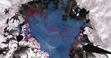 衛(wèi)星圖片顯示今年北極融冰范圍相對(duì)去年(紅線范圍)擴(kuò)大許多。