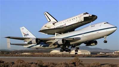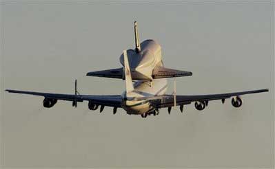 美國(guó)“奮進(jìn)”號(hào)航天飛機(jī)10日從加利福尼亞啟程,“騎”在在一架波音747大型貨機(jī)背上,前往佛羅里達(dá)的肯尼迪航天中心的“老家”。由于天氣不好,“奮進(jìn)”號(hào)在結(jié)束了本次太空之旅后,因佛羅里達(dá)天氣不好,只能備降在加州的愛(ài)德華茲空軍基地。