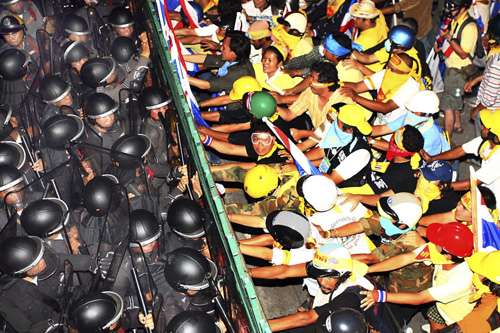 本月二十六日,民盟的支持者在曼谷舉行大規(guī)模示威,沖擊政府部門并占領(lǐng)總理府。盡管泰國(guó)民事法院發(fā)出命令,要求示威者撤出總理府,但領(lǐng)導(dǎo)示威的民盟拒絕執(zhí)行法院命令,繼續(xù)在總理府內(nèi)舉行示威。