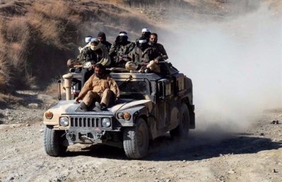 塔利班駕駛繳獲的美軍吉普“兜風”