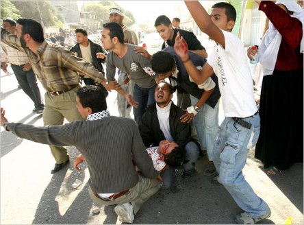 目擊者說,當(dāng)示威人群譴責(zé)哈馬斯武裝力量充當(dāng)什葉派穆斯林當(dāng)權(quán)的伊朗的代理人時,保安部隊開始向示威者開槍。