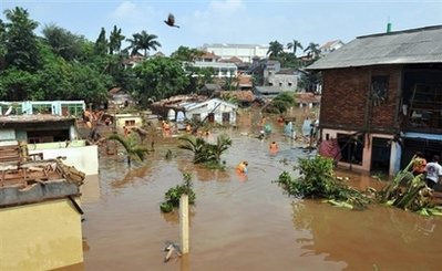 據(jù)悉,當(dāng)?shù)貢r(shí)間27日凌晨2時(shí)許,雅加達(dá)以南約50公里的文登縣唐格朗地區(qū)的古農(nóng)湖大壩突然崩塌,大水隨即沖入了居民區(qū),釀成災(zāi)難。