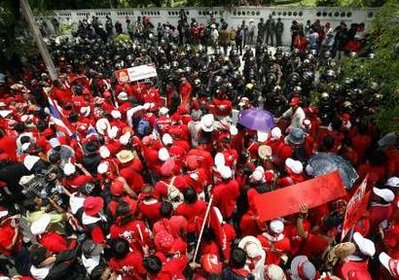 稱為反獨裁民主聯(lián)盟(反獨聯(lián))的“紅衫軍”在總理府門前提出3大要求,包括要求阿披實辭職;炳.廷素拉暖及前總理素拉育兩名樞密院大臣辭職;進行民主改革。據(jù)報他信兩名妹妹昨日亦在總理府外現(xiàn)身,但亦有報道指包括他信3名子女在內(nèi)的多名家屬已離開泰國。