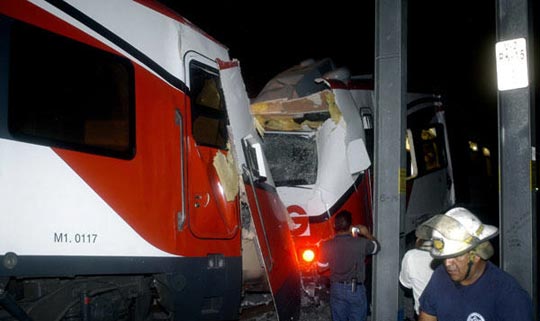 墨西哥城民防秘書莫雷諾說,事故發(fā)生在當(dāng)?shù)貢r間晚上10點20分,情況相當(dāng)復(fù)雜,十分混亂;疖囀窃趶牟及<{維斯塔到瓜烏蒂特蘭的鐵路上,圣拉法埃爾站與萊切里站之間相撞的。受傷人員已經(jīng)被送到醫(yī)院治理。發(fā)生事故的原因目前還不清楚。(人民網(wǎng)4月19日訊/管彥忠)