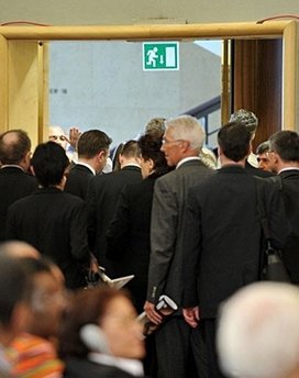 當(dāng)他說(shuō)到以色列借助二次大戰(zhàn)“猶太人的痛苦”成立國(guó)家時(shí),包括英國(guó)及法國(guó) 大使在內(nèi)的幾名歐洲代表實(shí)時(shí)離場(chǎng),以示抗議。法國(guó)總統(tǒng)薩科齊指摘內(nèi)賈德散播“仇恨言論”,要求歐盟各國(guó)采取強(qiáng)硬立場(chǎng)。聯(lián)合國(guó)人權(quán)專(zhuān)員的發(fā)言人亦批評(píng)內(nèi)賈德言論“不恰當(dāng)”。會(huì)議期間也至少有3名小丑打扮、戴著七彩假發(fā)及紅鼻子的法國(guó)猶太學(xué)生組織示威者,在會(huì)場(chǎng)上抗議內(nèi)賈德,打斷其講話(huà)。