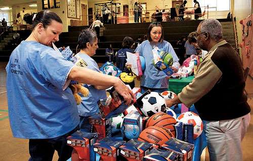 中新網(wǎng)12月25日電 據(jù)香港大公網(wǎng)報(bào)道,美國一座女子監(jiān)獄為囚犯安排了一場圣誕購物,設(shè)置了一個(gè)放滿廉價(jià)貨品的臨時(shí)“商店”,讓她們過過購物癮,獄中媽媽更可在這活動(dòng)中與子女享享天倫之樂。