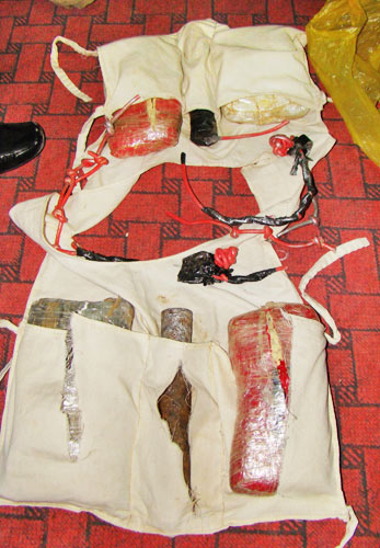 如何逮捕該名少女的具體情況仍不清楚。美國(guó)官員介紹說(shuō),在被強(qiáng)制裝上炸彈之后,該名少女就斷絕與任何人來(lái)往。但當(dāng)?shù)鼐秸f(shuō),她是在步行前往巴古拜的時(shí)候引起了警方的懷疑,一名警務(wù)人員在錄像中透露,她走路的樣子似乎已經(jīng)被麻醉過(guò)一樣。警方隨后向記者透露,內(nèi)衣中裝有33磅炸藥。內(nèi)衣上有6個(gè)隔層,其中兩個(gè)填充著管狀物,而其他四個(gè)則裝有包裹狀的東西。