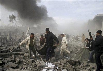 以色列發(fā)動(dòng)的空襲行動(dòng)摧毀了數(shù)個(gè)哈馬斯警察的院落,死傷者倒在地上。這是巴勒斯坦人20多年來所遭遇的最血腥的一天。