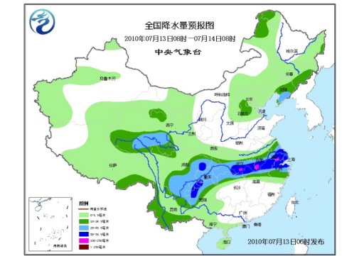 據(jù)中央氣象臺(tái)監(jiān)測(cè)顯示,昨天5時(shí)至今天5時(shí),江蘇中部、安徽中部和湖南西北部部分地區(qū)及四川南部局地降雨100-170毫米,江蘇泰州、姜堰、海安和湖南沅陵降雨量達(dá)200-230毫米。