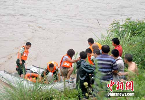 消防官兵利用沖鋒舟從上游200米的地方下水,駛向被困人員的地方,由于水流湍急,幾次前行都被洪水沖走。經(jīng)過幾個回合的反復,終于成功將被困孤島的男女成功救出。(完)