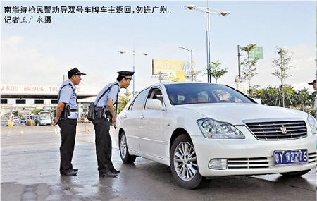 記者昨日在五丫口收費(fèi)站看到,7時一到,幾名交警和協(xié)管員便行動起來,站在路旁對雙號車進(jìn)行“攔截”。僅僅在一個小時內(nèi),南海桂城交警中隊(duì)的梁隊(duì)長和隊(duì)友便勸返了近百名雙號車車主。梁隊(duì)長稱,他們在此只是配合廣州“限行”,不會對車主罰款,告誡車主廣州實(shí)施“限行”,不要進(jìn)入廣州,可在過橋處的掉頭路口返回佛山。