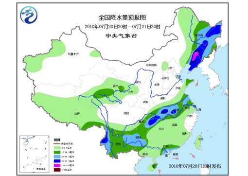 中新網7月20日電 據中央氣象臺網站消息,未來三天,遼寧中東部、吉林中東部、黑龍江中東部、河南大部、蘇皖中北部、湖北東部和南部、湖南西北部、貴州南部、云南大部、廣東大部、廣西東南部、海南等地將先后有大雨或暴雨,其中,遼寧北部、吉林中部、廣東沿海、海南北部等地的部分地區(qū)有大暴雨。上述部分地區(qū)并伴有短時雷雨大風或冰雹等強對流天氣。