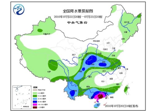 21日20時至22日20時,新疆西部、青海南部和東部、西藏中部、甘肅東部、寧夏、陜西大部、山西南部和西北部、內蒙古東北部、東北大部、黃淮大部、江淮、江漢、江南西部和南部、華南大部、西南地區(qū)大部等地有小到中雨或陣雨,其中,甘肅東部、陜西南部、四川北部、河南中南部、湖北北部、安徽中北部、江蘇西北部、云南東部、廣西東南部、廣東大部、海南等地有大雨或暴雨;廣東沿海、海南北部等地有大暴雨,局部特大暴雨;上述局部地區(qū)并伴有短時雷雨大風等強對流天氣。新疆中部、內蒙古西部、東北東部等地有4~6級風。受熱帶風暴“燦都”的影響,南海北部海域將有7~9級大風,“燦都”中心經過的附近海面的風力可達10~11級,部分海域陣風可達12級。