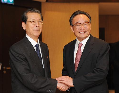在會(huì)見(jiàn)崔泰福時(shí),崔泰福首先轉(zhuǎn)達(dá)金正日總書(shū)記對(duì)胡錦濤總書(shū)記和吳邦國(guó)委員長(zhǎng)的親切問(wèn)候,吳邦國(guó)對(duì)此表示感謝,并請(qǐng)崔泰福議長(zhǎng)轉(zhuǎn)達(dá)胡錦濤總書(shū)記和他本人對(duì)金正日總書(shū)記的良好祝愿。吳邦國(guó)說(shuō),中朝傳統(tǒng)友誼是兩國(guó)老一輩領(lǐng)導(dǎo)人親手締造和培育的,經(jīng)受了國(guó)際風(fēng)云變幻的考驗(yàn),是兩國(guó)和兩國(guó)人民的寶貴財(cái)富。不久前,金正日總書(shū)記成功訪(fǎng)華,同胡錦濤總書(shū)記就雙邊關(guān)系和共同關(guān)心的重大國(guó)際和地區(qū)問(wèn)題達(dá)成一系列重要共識(shí),為兩國(guó)關(guān)系發(fā)展注入新的動(dòng)力。中國(guó)黨和政府高度重視中朝關(guān)系,不斷鞏固和發(fā)展中朝睦鄰友好合作關(guān)系是我們堅(jiān)定不移的戰(zhàn)略方針。中方愿同朝方保持高層交往,加強(qiáng)戰(zhàn)略溝通,深化經(jīng)貿(mào)合作,擴(kuò)大人文交流,加強(qiáng)國(guó)際協(xié)調(diào),維護(hù)共同利益,推動(dòng)中朝關(guān)系不斷向前發(fā)展,更好地造福兩國(guó)和兩國(guó)人民。