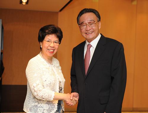 在會(huì)見(jiàn)陳馮富珍時(shí),吳邦國(guó)說(shuō),這些年,中國(guó)與世衛(wèi)組織在流行病防治、健康教育、醫(yī)療培訓(xùn)、公共衛(wèi)生能力建設(shè)、傳統(tǒng)醫(yī)學(xué)發(fā)展等方面開(kāi)展了很好的合作。中方感謝世衛(wèi)組織對(duì)中國(guó)醫(yī)藥衛(wèi)生體制改革和公共衛(wèi)生事業(yè)發(fā)展給予的指導(dǎo)、支持和幫助,期待與世衛(wèi)組織進(jìn)行更深層次、更寬領(lǐng)域的合作。