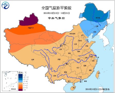 中新網(wǎng)10月11日電 據(jù)中央氣象臺(tái)預(yù)報(bào),未來10天,影響中國的冷空氣較為頻繁,北方地區(qū)冷暖變化較大,南方地區(qū)氣溫變化較平穩(wěn)。新疆、甘肅西部、內(nèi)蒙古西部地區(qū)平均氣溫比常年同期偏高1-2℃,內(nèi)蒙古東北部、東北地區(qū)中北部比常年同期偏低1-2℃,中國其余大部地區(qū)氣溫接近常年同期。