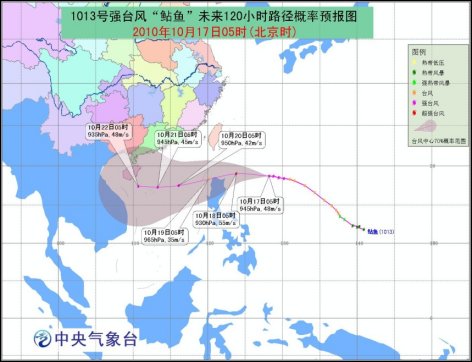 中新網(wǎng)10月17日電 據(jù)中央氣象臺預報,今年第13號強臺風“鲇魚”于16日晚加強為強臺風,17日上午8時再度加強為超強臺風,成為今年最強的臺風。受其影響,未來三天,中國南部海區(qū)都將掀起7~9級的大風。
