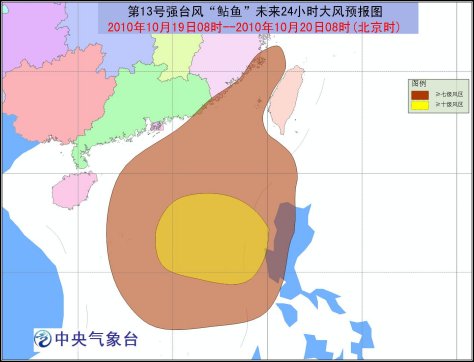 受“鲇魚”和冷空氣的共同影響,19日08時至20日08時,臺灣海峽、巴士海峽、巴林塘海峽、南海大部、福建沿海、廣東東部沿海將有7-9級大風,陣風可達10-12級,其中南海東北部和中部偏東海域?qū)⒂?0-12級大風,陣風可達13-14級,“鲇魚”中心經(jīng)過的附近海面風力有13-16級,陣風可達17級以上;臺灣東部地區(qū)將有大到暴雨,局部地區(qū)將有大暴雨。