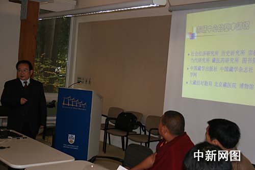 與加拿大的大學和研究機構進行學術交流是代表團此行的主要目的。今天上午,代表團來到位于溫哥華的不列顛哥倫比亞大學,與該校亞洲研究院從事藏學研究的教授和博士、碩士研究生進行學術座談。代表團成員逐一介紹了所在機構的情況以及各自研究的領域。