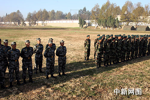 在云南明媚的陽光下,中印兩軍參訓(xùn)部隊(duì)在訓(xùn)練場整齊列隊(duì)。雖然兩國軍人之間還有一步之隔,但指揮員卻是聯(lián)合指揮所印方指揮官阿比謝·庫馬爾少校。他大聲地下達(dá)“Attention(立正)”口令后,印軍官兵馬上高抬右腳重重跺在地上,立正站好。而中方官兵由于對(duì)其口音不熟悉,個(gè)別人還要有個(gè)在心里翻譯的過程,動(dòng)作略有遲緩。見此情景,聯(lián)合指揮所中方指揮官耿紹波少校馬上就隊(duì)列口令與庫馬爾少校進(jìn)行了交流。五六分鐘后,中方官兵就熟悉了庫馬爾少校的口令,兩軍動(dòng)作步調(diào)便一致起來,中印軍隊(duì)兩位少校也互相豎起了大拇指。