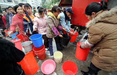 來自郴州市自來水公司的消息說,目前郴州市一共只設置了29個取水點,而對于用水出現(xiàn)困難的一些小區(qū),政府正組織消防車輛有計劃地送水上門,但每戶用水量都有控制。