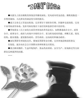 這一規(guī)劃確定,未來(lái)5年的反腐工作目標(biāo)是,“建成懲治和預(yù)防腐敗體系基本框架,拒腐防變教育長(zhǎng)效機(jī)制初步建立,反腐倡廉法規(guī)制度比較健全,權(quán)力運(yùn)行監(jiān)控機(jī)制基本形成,從源頭上防治腐敗的體制改革繼續(xù)深化,黨風(fēng)政風(fēng)明顯改進(jìn),腐敗現(xiàn)象進(jìn)一步得到遏制,人民群眾的滿意度有新的提高”。