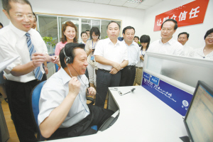 來到“省長手機(jī)”工作處,吳新雄向工作人員表示親切慰問,并詳細(xì)了解平臺建設(shè)情況。當(dāng)了解到江西移動利用我省最大的客戶服務(wù)呼叫中心平臺及運營經(jīng)驗,為“省長手機(jī)”搭建了一個集合電話語音、計算機(jī)網(wǎng)絡(luò)、數(shù)據(jù)庫管理等技術(shù)的綜合信息服務(wù)平臺,可提供24小時聲訊服務(wù)時,吳新雄給予了充分肯定。