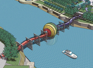 該市市政公用局周科長(zhǎng)介紹,分界線上的標(biāo)志物將與淮安一歷史遺存老橋墩(規(guī)劃建設(shè)的“紅橋”)相融合一并建設(shè),該橋始建于上世紀(jì)三十年代,曾見證過淮安的滄桑歷史,分界線上的標(biāo)志物與具有一定歷史意義的老橋墩相融合,更增添了城市特色,也深化了文化內(nèi)涵。標(biāo)志物的“長(zhǎng)相”是一個(gè)球形,位于紅橋中間位置,亦是河道中心線位置。以球形為母體,分為南北兩半球,北側(cè)為漸變冷色調(diào),南側(cè)為漸變暖色調(diào),喻意地球上的南北氣候特征。行人可從球中穿過,感受跨越南北氣候帶的感觀變化。 (沈國(guó)良 井建國(guó) 朱鼎兆)